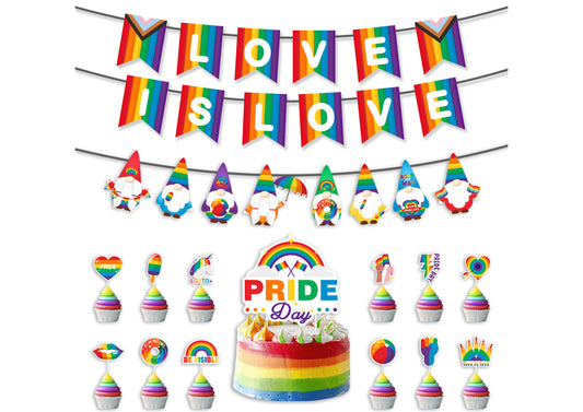 Pride LGBT Banner, Pride LGBT Cake Toppers, Rainbow Gay Birthday Party Decorations