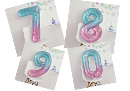 Fantasy Starry Mermaid Teal Blue Purple Balloons, 40 Inch Giant Numerical Foil Mylar Balloons