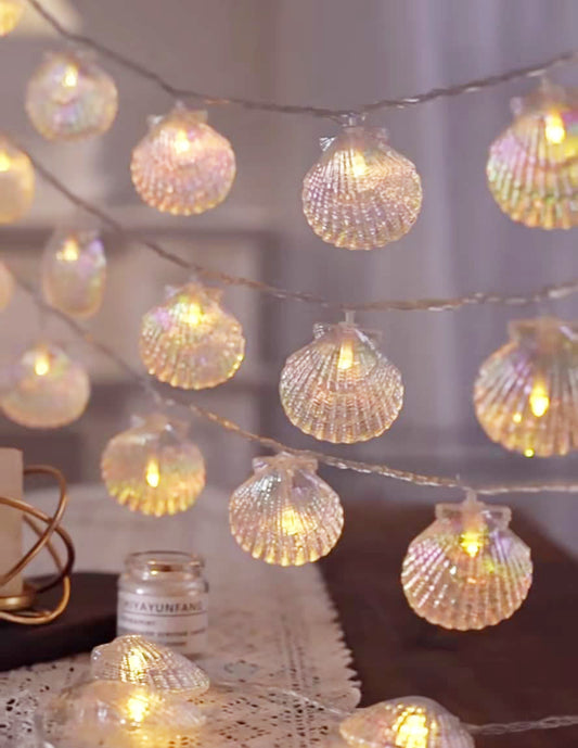 Seashell Ocean Fairy String Lights, Warm White Flashable Battery Powered Light