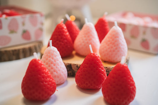 9pcs Pink Red Strawberry Candles Set, Scented Candles, Christmas Birthday Gift Box