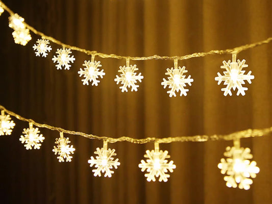 Snowflake Fairy String Lights, Warm White Flashable Battery Powered Lights