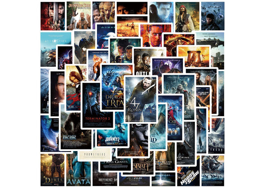 50 pcs Movie Theme Stickers, Action Science Fiction Drama Movies Vinyl Stickers