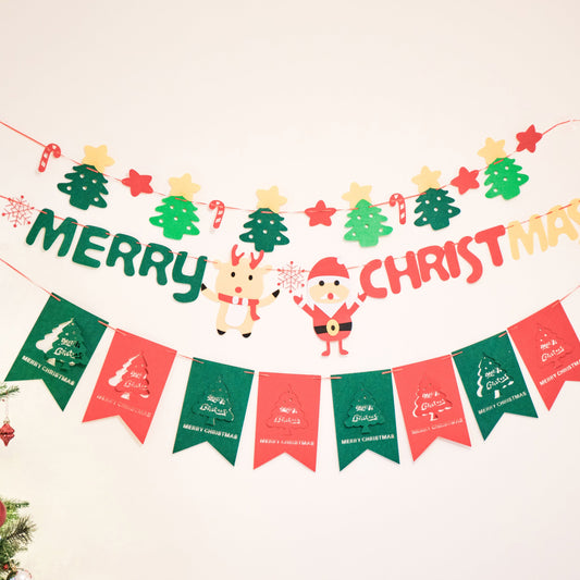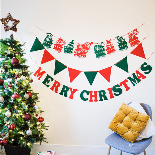 Christmas Deer Bunting, Christmas Tree Bunting, Xmas Santa Banner