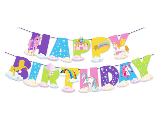 Unicorn Birthday Banners, Colorful Cartoon Happy Birthday Letter Banners
