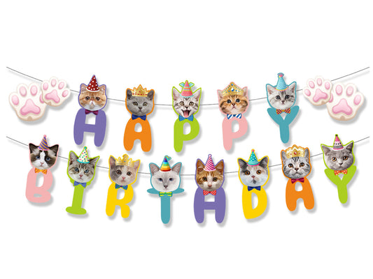 Cat Birthday Banners, Kawaii Banners, Cat Cake Toppers