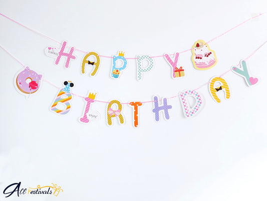 Colorful Cartoon Birthday Bunting Banner, Birthday Party Decorations