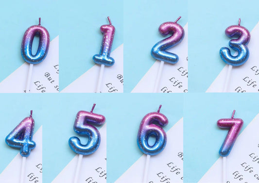 Galaxy Gradient Birthday Number Candles, Numeral Candles Purple to Blue Gradient Color Glitter