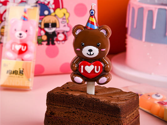 Bear Cake Candle with Colorful Hat and I Love You Letter