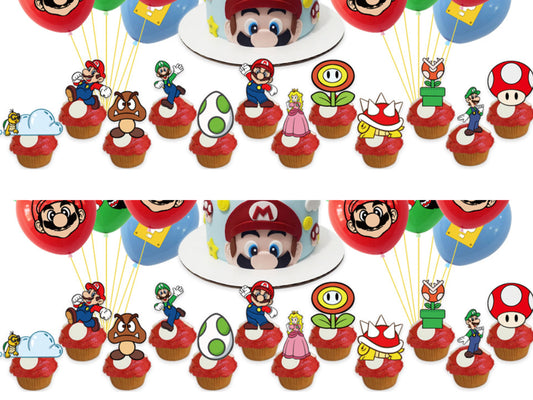 Mario Acrylic Cake Toppers 13 PCS, Mario Theme Party Birthday Cake Decorations