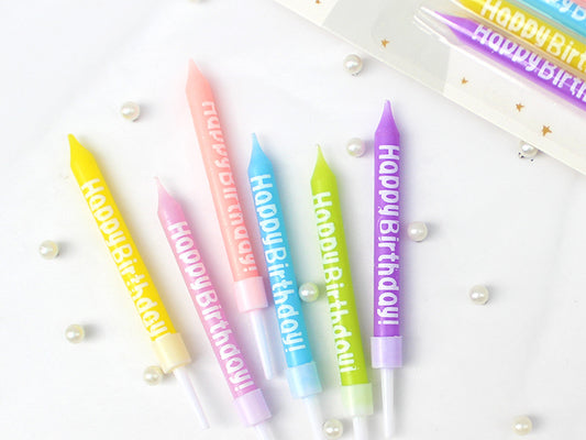 Macaron Pencil Shape Candles 6pcs, Colorful Birthday Cake Cupcake Candles