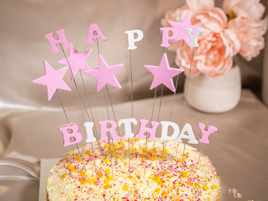 Happy Birthday Letter DIY Cake Toppers, Pink Birthday Cake Decorations
