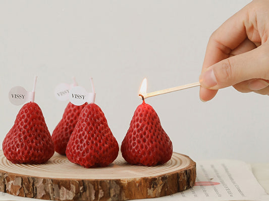 Handmade Strawberry Shaped Scented Candles, Pink Red Soy Wax Candles