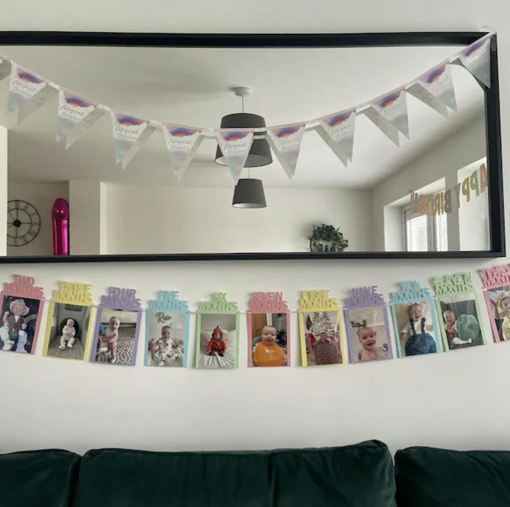 Colorful Birthday Photo Frame Banner, Muiticolor Baby's 1st Year Birthday Photo Banner Bunting